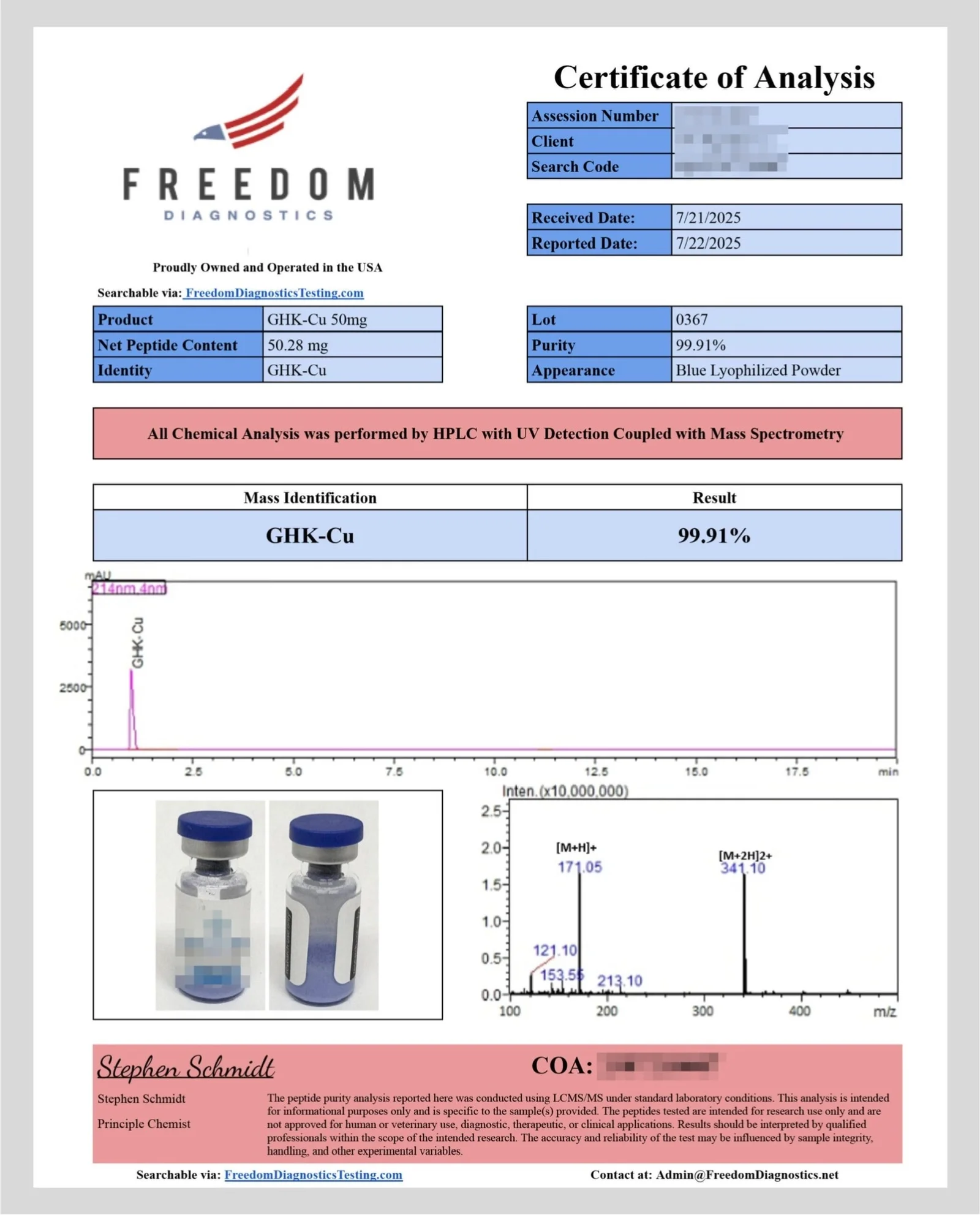GHK -Cu (Glycyl-L-Histidyl-L-Lysine Copper) is a bioactive copper peptide widely studied for its regenerative, anti-aging, and repairing properties. Naturally present in the human body, it plays a key role in stimulating collagen , improving skin elasticity, and repairing damaged tissue .